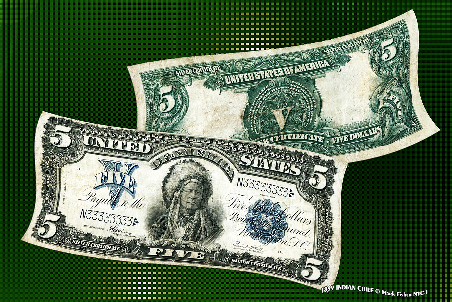 1899 INDIAN CHIEF • Mark Fisher Photography • Circulated Five Dollar Note
