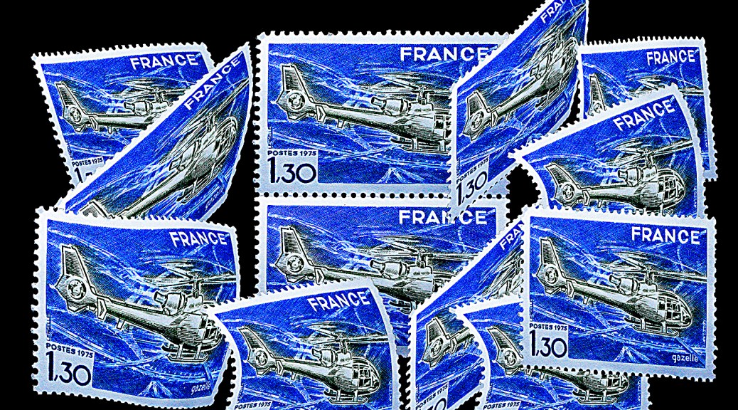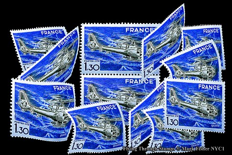 Flying Through Stamps • American Photographer Mark Fisher • A French Helicopter Postage